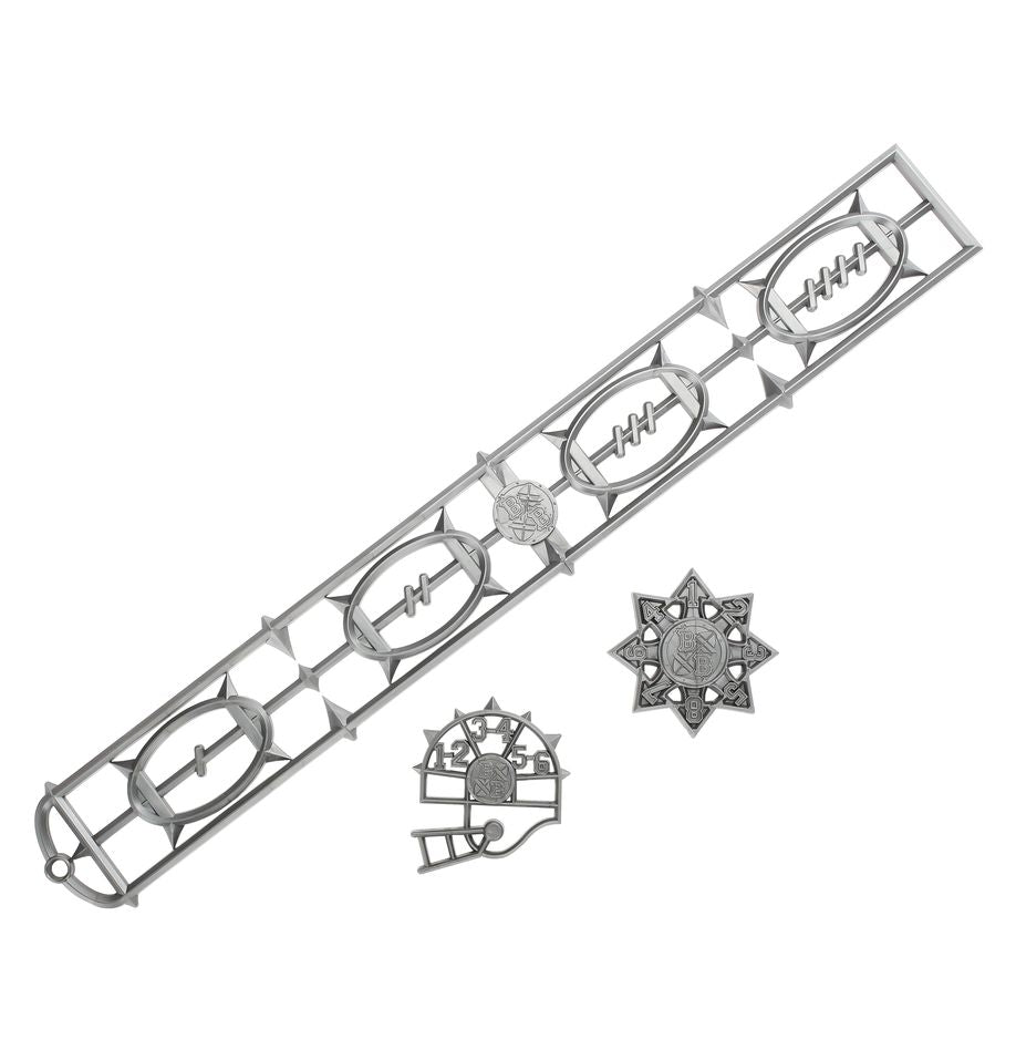 – 14 Bone-coloured plastic Tomb Kings players: 2x Tomb Kings Blitzers, 2x Tomb Kings Throwers, 4x Tomb Guardians, 6x Skeleton Linemen, plus coins, Re-roll markers, and extra balls
