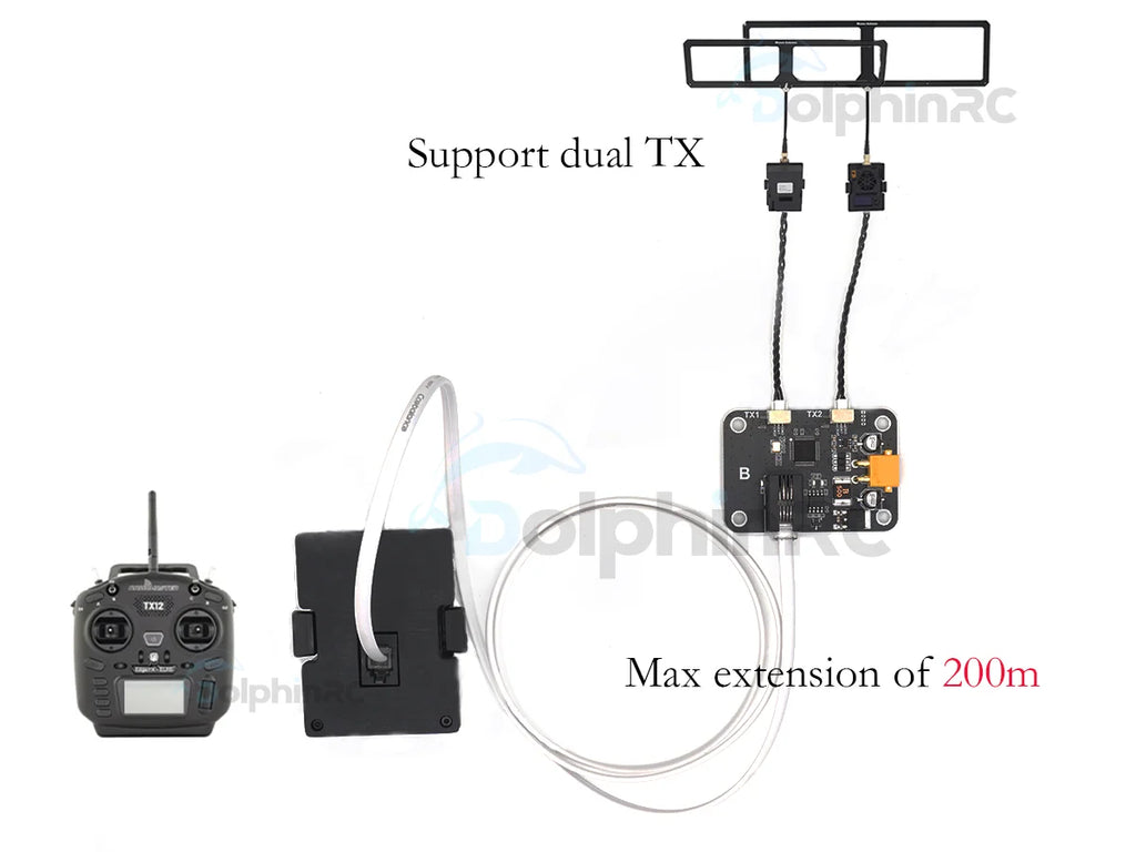 - Using the transmitter RF module to binding the receiver. Make sure that RX1 is successfully linked to TX1 and RX2 is successfully linked to TX2 . Do NOTuse the remote controller to binding.